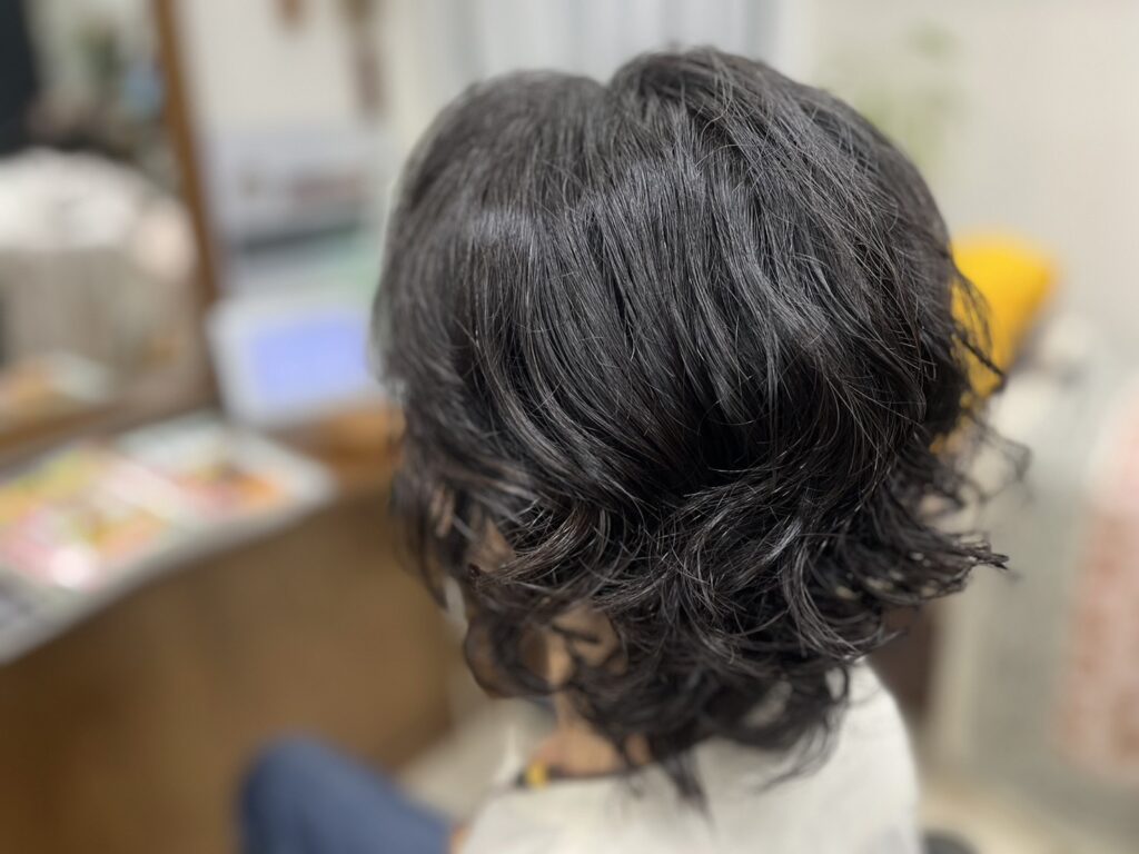 膨らみやすいデリケートな髪質なので慎重に矯正してから毛先5cmくらいカットして7トーンベージュブラウンで染めました(‘◇’)ゞ