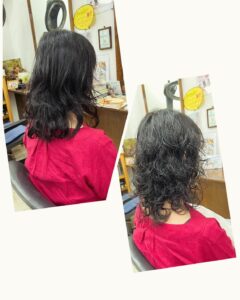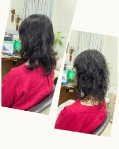 柔らかい感触で弾力の出るマレーアのウェーブ剤でウェーブを形成!ヘアーマニキュアで染めました!(^^)!