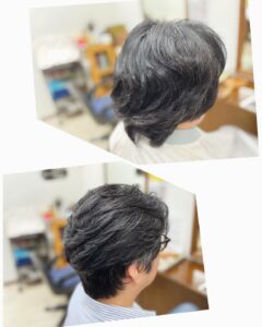 シルエットにメリハリをつけるために、上下ツーセクションでカット!毛量も減らしてます(‘◇’)ゞ