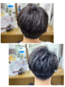 毛量が多いので減らしこみました!ご本人の要望でサイドの内側は1ミリにしました。バランスを考えてシルエットを整えました。