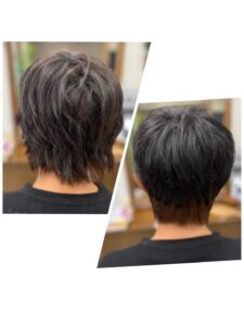 インナーに13レベルのアルカリカラーで上は香草カラーのダークブラウンでメリハリを出しました!(^^)!