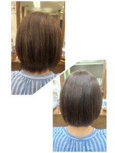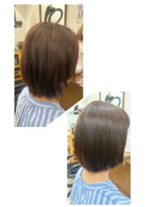 後頭部と耳の後ろの癖が非常に強かったです。イエローブラウン6.5トーンで染めました(*^^)v