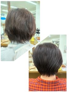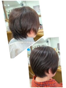 ベージュブラウン系で染めてツヤ出し効果が期待出来ます(*^^)v