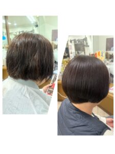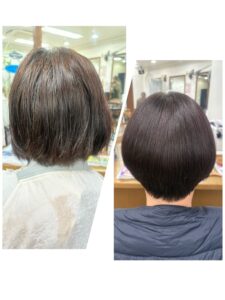 ご来店ありがとうございました!襟足をタイトにして内側の髪を減らし香草カラーで染めました。髪に対するリスクの少ないカラー剤です!(^^)!