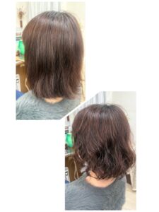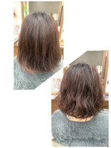 たて巻き根元からスパイラル巻きでソフトなニュアンスのウェーブスタイルにイメージチェンジしました(*^^)v